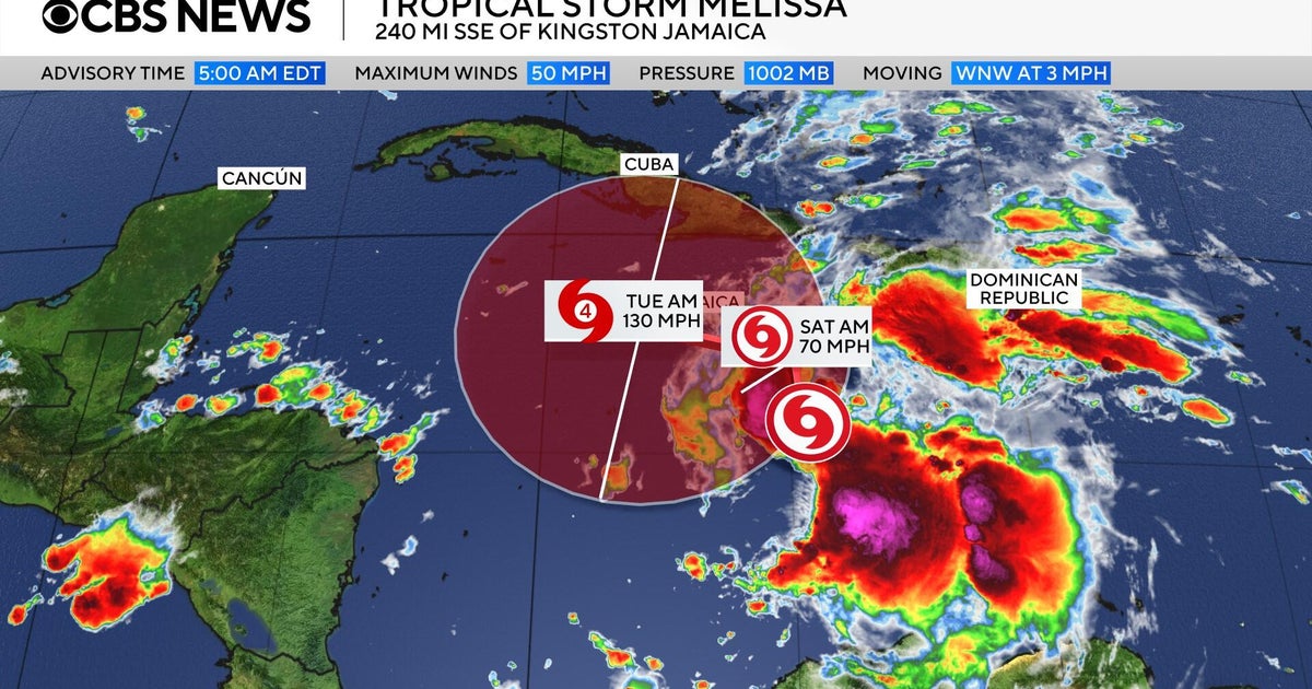 Tropical Storm Melissa is anticipated to convey days of heavy rain to the Dominican Republic, Haiti and Jamaica and should set off life-threatening flash flooding, the Nationwide Hurricane Heart says.